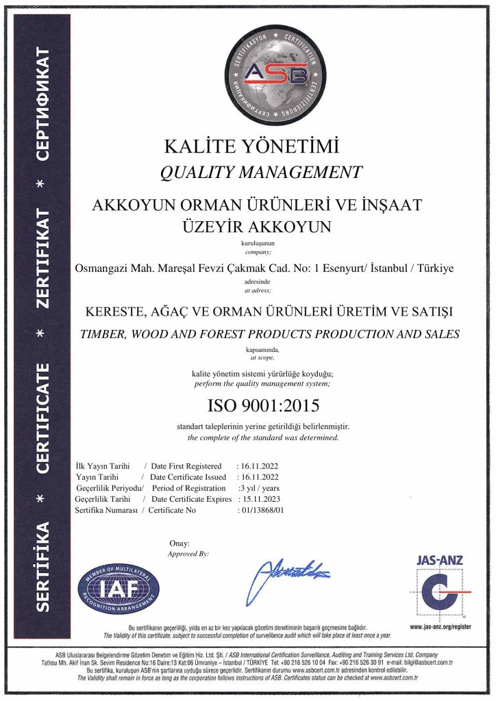 Akkoyun Orman Ürünleri ve İnşaat 5.000 m2 alan üzerine kurulu İstanbul Esenyurt’taki fabrikamızda tamamen çevreye duyarlı olarak üretim yapılmakta olup, değişik kıtalardan ve değişik iklimlerden özenle seçilen tomruklar en ileri teknoloji ve titizlikle işlenmektedir. Bu büyük yatırımla birlikte profesyonel, idari ve üretim kadrosunu da genişleten Akkoyun Orman Ürünleri ve İnşaat olarak hizmet vermeye devam etmektedir. Müşterilerinin ihtiyaçlarına kaliteli ürünlerle cevap verebilmek adına sürekli gelişim düsturunu ilke edinen firmamız, makine parkuruna da sürekli yatırım yapmaktadır.“Kaliteli ürün, Memnun ermilaofficial müşteri” anlayışı ile her geçen gün lider konumunu sağlamlaştıran öncü bir firmadır.Yapı sektörünün olmazsa olmazı olan orman ürünlerini, son teknoloji makinalar ve profesyonel ekibi ile ince ince işleyip, kullanım alanına uygun hale getiren Akkoyun Orman Ürünleri ve İnşaat ,Türkiye’deki üstün başarısını, dünyaya da taşıyarak ülkemizi en iyi şekilde temsil etme misyonunu yüklenmiş konumdadır.